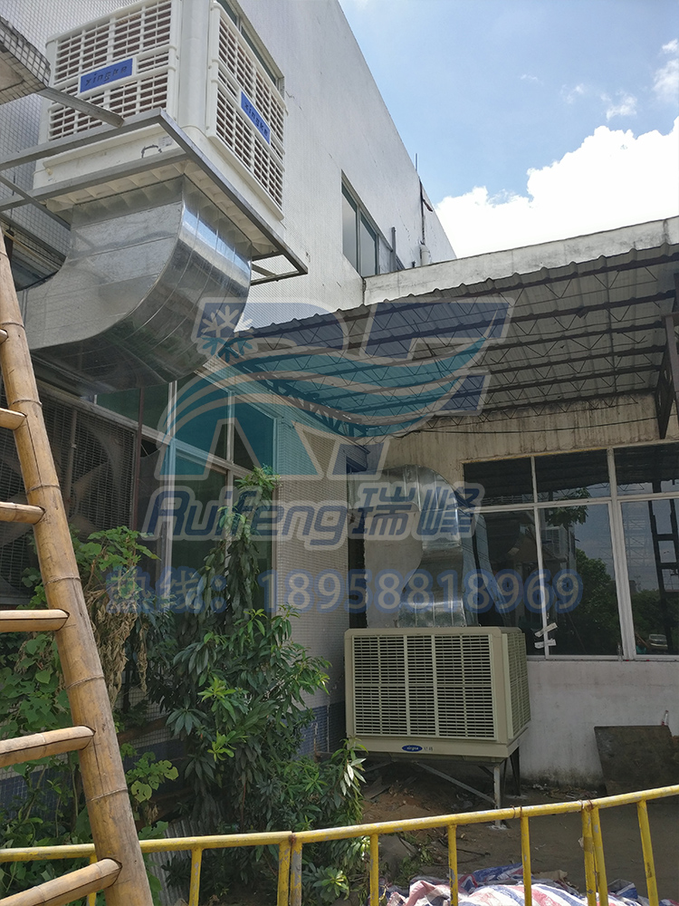 Based on the above analysis, we have abandoned the high energy consumption mode of traditional air conditioning and innovatively adopted a system design of high-power stainless steel evaporative air cooler+long air duct for uniform air supply. The main body of the equipment is installed on the outside of the building wall, without occupying valuable indoor production area. Its working principle is the natural physical phenomenon of absorbing heat through water evaporation. After cooling the fresh outdoor air, it is evenly and accurately transported to various work areas in the workshop through a scientifically arranged long air duct system. At the same time, the large air volume generated by the equipment creates a micro positive pressure environment indoors, effectively squeezing out the hot air, dust, and odors generated by personnel activities and machine operation, achieving the triple effect of ventilation, cooling, and air exchange.