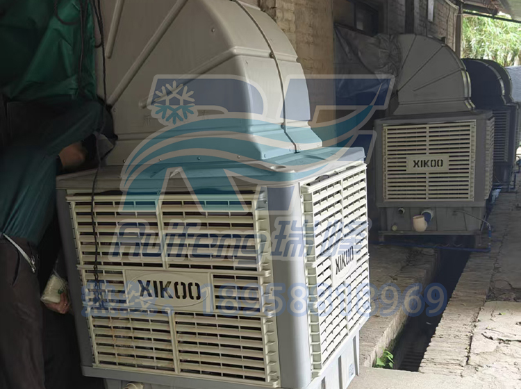 The building structure of the milk production center is relatively transparent, but due to the lack of effective ventilation and cooling facilities, the interior is hot and humid during the high temperature period in summer, and cows are prone to heat stress reactions, which affect feeding and milk production. To address this challenge, the design team of Ruifeng Environmental Protection Refrigeration conducted in-depth on-site research, taking into account various factors such as the climate characteristics of Guangzhou, the special needs of the aquaculture industry, and equipment investment costs. Finally, a flexible, economical, and efficient ventilation and cooling solution was proposed, which combines multiple mobile centrifugal air coolers with mobile industrial grade large fans.