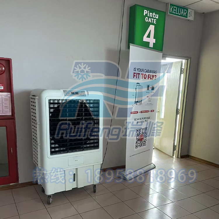 针对机场候机厅这种高大空间、人流量波动大的特殊环境,瑞峰环保制冷的方案设计人员在深入勘查后,摒弃了传统固定式设备的思维,综合分析了空间气流组织、瞬时客流密度及设备投入成本等多方因素,创新性地采用了“移动离心式冷风机+移动工业级永磁无级调速大风扇”的组合布置方案。