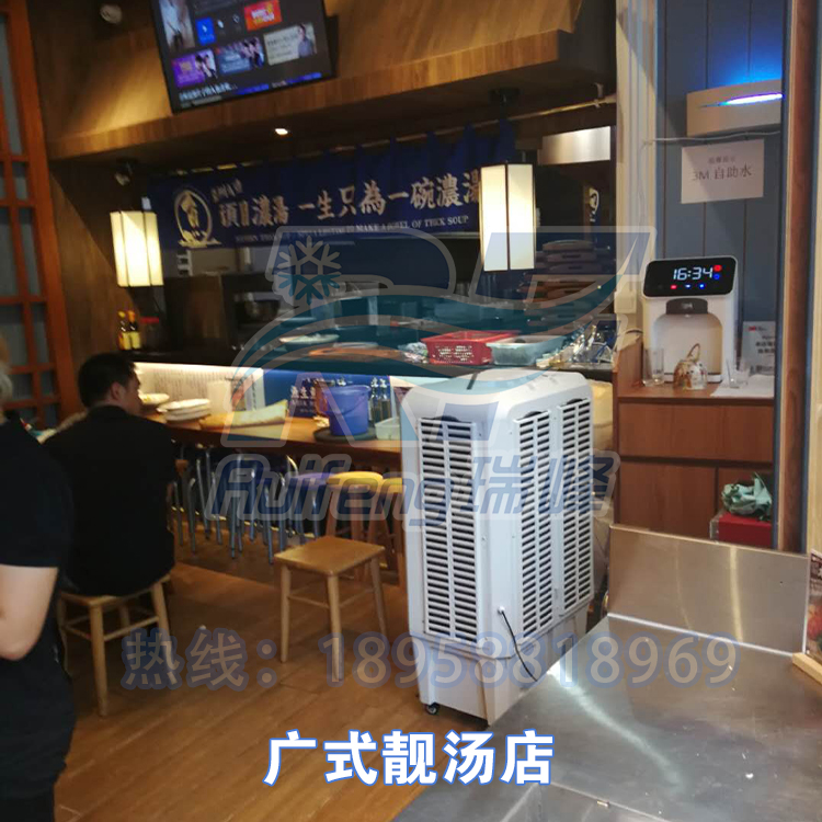 The designers of Ruifeng's plan have comprehensively considered the common characteristics of catering venues, such as high personnel mobility, open or semi open spaces, and equipment cost control. Without changing the ventilation and cooling facilities of the original stores, they have adopted a layout plan of mobile centrifugal air coolers for stores that need to improve and enhance their dining environment. The advantages of this design are as follows: