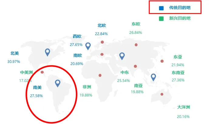 百炼智能调研数据显示,北美、西欧、南美作为传统出海目的地,是企业选择最多的出海地区,分别有30.97%、27.65%、27.58%的企业在该地区布局,巴西作为南美经济 “压舱石”,机遇密码再次升级。