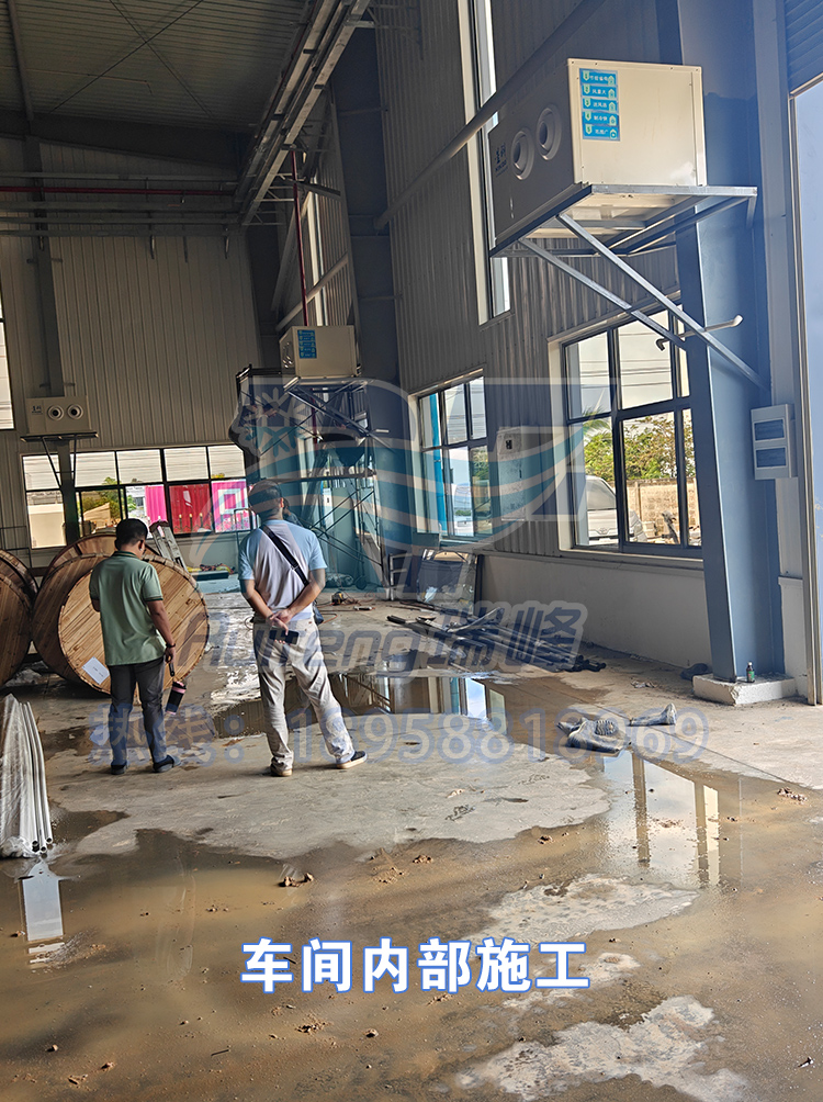 最终方案确定为:定制卧式射流除湿型蒸发冷省电工业空调系统。该设备融合蒸发冷却与强制除湿技术,通过远距离射流送风实现库内温度均匀下降,同时将湿度稳定控制在工艺要求范围内。机组适配当地电压规格,具备能耗低、送风远、维护简便等特点,尤其适合电力资源紧张的地区长期运行。