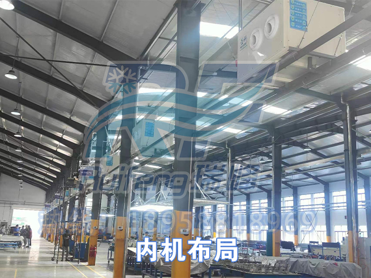The Ruifeng technical team comprehensively considers multiple factors such as geographical climate characteristics, factory structure characteristics, and actual production layout: in response to the difficulty of air supply in high-rise spaces, jet type industrial air conditioners with long air supply distances and wide coverage areas are selected; Considering the actual situation of large workshop area and dense ground equipment, a hanging installation method that does not occupy production area is adopted to maximize the preservation of working space. After rigorous calculations, multiple high-power suspended jet industrial energy-saving air conditioning systems were ultimately designed and implemented.
