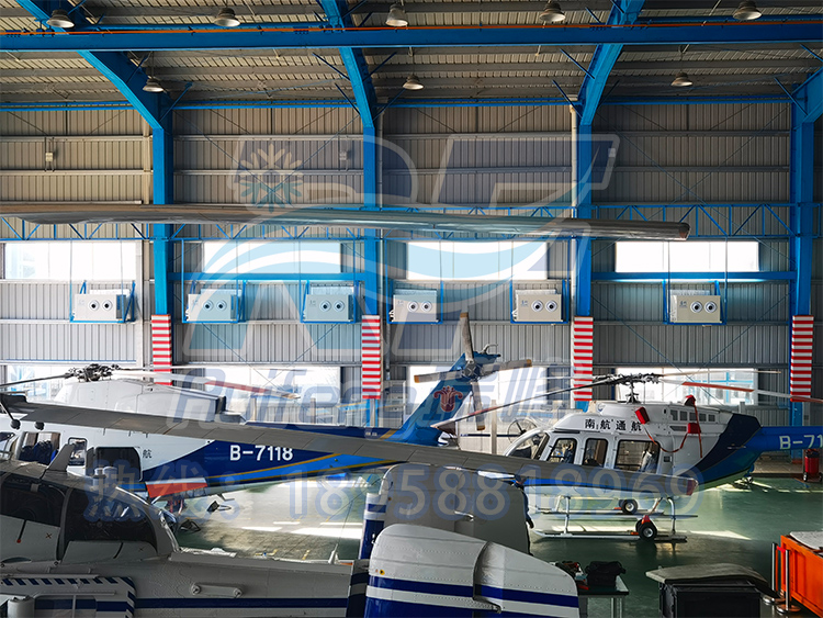 This workshop is the specialized maintenance center for Southern Airlines helicopters, responsible for key maintenance tasks such as aircraft inspection, engine maintenance, avionics system debugging, and rotor balance calibration. These processes have strict requirements for environmental cleanliness, temperature and humidity, and air circulation: constant temperature and humidity can avoid measurement errors caused by thermal expansion and contraction of precision instruments, and good ventilation can effectively discharge welding fumes and chemical volatile gases, ensuring personnel health and job safety.
