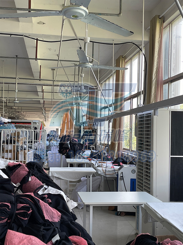 The heat source in the workshop mainly comes from two aspects: one is the intensive operation of employees (about hundreds of people), and the other is the strong outdoor solar radiation in summer. Although industrial sewing machines themselves have limited heat production, the combination of personnel density and high temperature weather results in the workshop being in a hot and humid state for a long time, leading to increased employee fatigue and difficulty in ensuring production efficiency and quality stability.