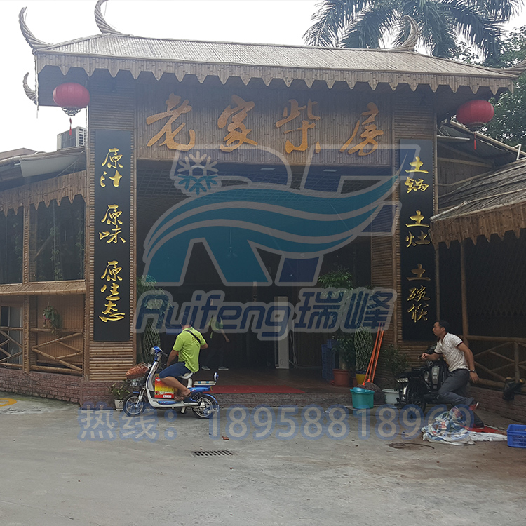 2、正压送风排浊气:冷风机持续送入新风,使室内形成微正压,将油烟味、浊气通过竹编墙缝隙自然排出,保持空气清新;